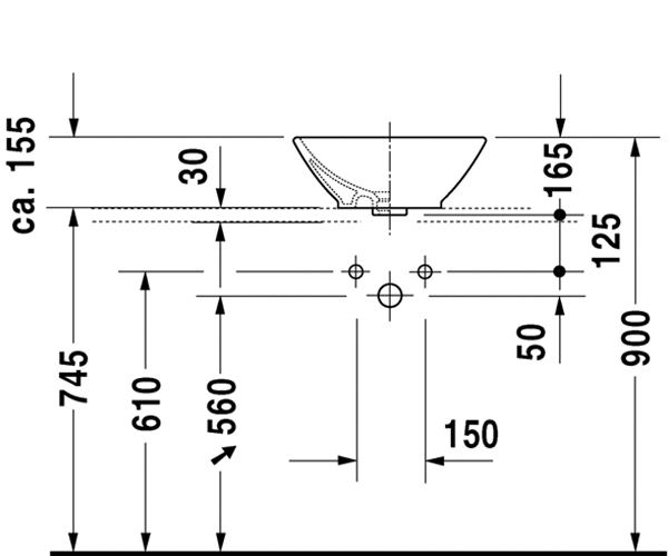 Starck 3 嵌入式脸盆0302560000 台上式脸盆, 有溢水口, 有安装龙头台, 560 ...